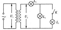 如图所示,理想变压器的原、副线圈的匝数比一定,电源电压不变,原线圈的电压为U1时,副线圈的输出电压为U2,L1、L2、L3为三只完全相同的电灯,开始时,电键K断开,然后当电键K闭合时( )