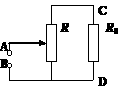 3、如图所示,AB两端接直流稳压电源,UAB=100V,R0=40W,滑动变阻器总电阻R=20W,当滑动片处于变阻器中点时,C、D两端电压UCD为_________V,通过电阻R0的电流为__________A。