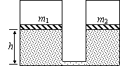 如图所示,两个可导热的气缸竖直放置,它们的底部都由一细管连通(忽略细管的容积)。两气缸各有一个活塞,质量分别为m1和m2,活塞与气缸无摩擦。活塞的下方为理想气体,上方为真空。当气体处于平衡状态时,两活塞位于同一高度h。(已知m1=3m,m2=2m)