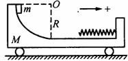 (2)质量为M的小车置于水平面上,小车的上表面由光滑的1/4圆弧和光滑平面组成,弧半径为R,车的右端固定有一不计质量的弹簧,如图所示.现有一质量为m的滑块从圆弧最高处无初速下滑,与弹簧相接触并压缩弹簧.求:
