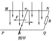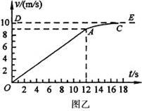 16、如图甲所示,空间存在B=0.5T,方向竖直向下的匀强磁场,MN、PQ是相互平行的粗糙的长直导轨,处于同一水平面内,其间距L=0.2m,R是连在导轨一端的电阻,ab是跨接在导轨上质量m=0.1kg的导体棒,从零时刻开始,通过一小型电动机对ab棒施加一个牵引力F,方向水平向左,使其从静止开始沿导轨做加速=运动,此过程中棒始终保持与导轨垂直且接触良好,图乙是棒的速度一时间图象,其中OA段是直线,AC是曲线,DE是曲线图象的渐近线小型电动机在12s末达到额定功率P=4.5W,此后功率保持不变。除R以外,其余部分的电阻均不计,g=10 m/s2。