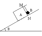 14、(8分)如图所示,固定在水平面上的斜面倾角为θ=370,长方体木块A的MN面上钉着一颗小钉子,质量m=1.5kg的小球B通过一细线与小钉子相连接,细线与斜面垂直,木块与斜面间的动摩擦因数μ=0.50。现将木块由静止释放,木块沿斜面下滑,求下滑过程中木块对小球支持力的大小。(取g=10m/s2,sin370=0.6,cos370=0.8)
