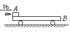 16、(10分)如图所示,质量为mB=2kg的平析小车B静止在光滑的水平面上,板的左端静置一质量为mA=2kg的小物体A。一颗质量为10g的子弹以v0=600m/s的水平速度射穿物体A后,子弹速度变为v1=100m/s。物体A与小车B之间的动摩擦因数为0.05,g=10m/s2。求: