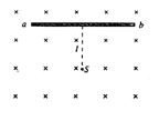 个点状的α放射源S,它向各个方向发射α粒子,α粒子的速度都是v=3.0×106m/s,已知α粒子的电荷与质量之比=5.0×107C/kg,现只考虑在图纸平面中运动的α粒子,求ab上被α粒子打中的区域的长度。