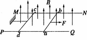 24.(16分)如图所示,在方向竖直向上的磁感应强度为B的匀强磁场中有两条光滑固定的平行金属导轨MN、PQ,导轨足够长,间距为L,其电阻不计,导轨平面与磁场垂直.ab、cd为两根垂直于导轨水平放置的金属棒,其接人回路中的电阻分别为R,质量分别为m.与金属导轨平行的水平细线一端固定,另一端与cd棒的中点连接,细线能承受的最大拉力为T,一开始细线处于伸直状态,ab棒在平行导轨的水平拉力F的作用下以加速度a向右做匀加速直线运动,两根金属棒运动时始终与导轨接触良好且与导轨相垂直.