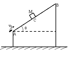 25.(20分)如图所示,倾角θ=37°的固定斜面AB长L=12m,质量为M=1kg的木块由斜面上的中点C从静止开始下滑,0.5s时被一颗质量为m=20g的子弹以v0=600m/s沿斜面向上的速度正对木块射入并穿出,穿出时速度u=100m/s。以后每隔1.5s就有一颗子弹射入木块,设子弹射穿木块的时间可忽略不计,且每次射入木块对子弹的阻力都相同。已知木块与斜面间的动摩擦因数μ=0.25。(g取10m/s2,sin37°=0.60,cos37°=0.80),求: