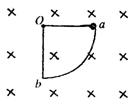 一端无摩擦地挂在O点,另一端连结一个金属小球,小球质量为m并跟金属槽环接触良好且无摩擦。Ob是一根竖直固定的与金属槽环连接的金属丝,电阻为R.整个装置放在垂直于纸面向里的匀强磁场中,磁感应强度为B.现把金属小球从a点由静止释放,它滑到b点时速度为v,所经历时间为t,求在这一过程中,