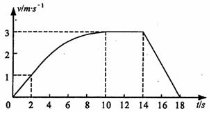 16. (14分)某兴趣小组对一辆自制遥控小车的性能进行研究,他们让这辆小车在水平的直轨道上由静止开始运动,并将小车运动的全过程记录下来,通过处理转化为v – t图象,如图所示(除2s – 10s时间段内的图象为曲线外,其余时间段图象均为直线)。已知小车运动的过程中,2s-14s时间段内小车的功率保持不变,在14s末停止遥控而让小车自由滑行。小车的质量为1kg,可认为在整个过程中小车所受到的阻力大小不变,求: