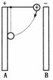 如右图所示,充电后的平行板电容器竖直放置,板间一带正电的绝缘球用绝缘细线悬挂于A板上端,若将小球和细线拉至水平位置,由静止释放后小球将向下摆动直至与A板发生碰撞,此过程细线始终处于伸直状态,则此过程中