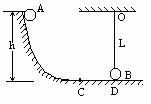 17.如图所示,球A无初速地沿光滑圆弧滑下至最低点C后,又沿水平轨道前进至D与质量、大小完全相同的球B发生动能没有损失的碰撞,碰撞后两球交换速度.B球用长L的细线悬于O点,恰与水平地面切于D点.A球与水平地面间摩擦系数m=0.1,已知球A初始高度h=2m,CD=1m,g取10m/s2.问: