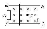 19、(17分)如图所示,两根固定在水平面上的光滑平行金属导轨MN和PQ,一端接有阻值为R的电阻,处于方向竖直向下的匀强磁场中。在导轨上垂直导轨跨放质量为m的金属直杆,金属杆的电阻为r,金属杆与导轨接触良好、导轨足够长且电阻不计。金属杆在垂直于杆的水平恒力F作用下向右匀速运动时,电阻R上消耗的电功率为P,从某一时刻开始撤去水平恒力F去水平力后: