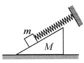水平面上。弹簧的一端固定在墙面上,另一端与放在斜