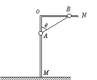 24.(20分)如图所示,有一光滑的直角支架MON直立在水平地面上,支架的竖直部分OM长为2l。两个质量均为m的小球A和B套在支架上,并通过长为l的细绳相连。现从图示位置(细绳与竖直方向的夹角θ=60°)由静止开始释放两球,当小球B运动到支架O处时,与放在该处的小球C(图中未画出)发生碰撞,碰后小球B静止,而小球C水平抛出,落地时,落点到M的距离为l。试求:
