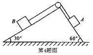 如图所示,一直角斜面固定在地面上,右边斜面倾角60°,左边斜面倾角30°,A、B两物体分别系于一根跨过定滑轮的轻绳两端,分别置于斜面上,两物体可以看成质点,且位于同高度处于静止平衡状态,一切摩擦不计,绳子均与斜面平行,若剪断绳,让两物体从静止开始沿斜面下滑,下列叙述正确的是