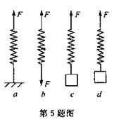 如图所示,四个完全相同的弹簧都处在竖直方向上,它们的上端受到大小都为F的拉力作用,而下端的情况各不相同;a中弹簧下端固定在地面上,b中弹簧下端受大小也为F的拉力作用,c中弹簧下端拴一质量为m的物块且在竖直方向上运动,d中弹簧下端拴一质量为2m的物块且在竖直方向上运动. 设弹簧的质量为0,以L 1、L2、L 3、L 4依次表示a、b、c、d四个弹簧的伸长量,则以下关系正确的有