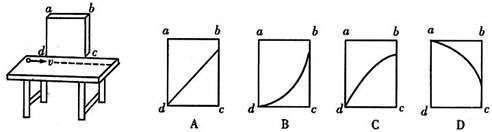 2.如图所示,光滑水平桌面上,一小球以速度v向右匀速运动,当它经过靠近桌边的竖直木板ad边前方时,木板开始作自由落体运动。若木板开始运动时,cd边与桌面相齐,则小球在木板上的投影轨迹是 ( )