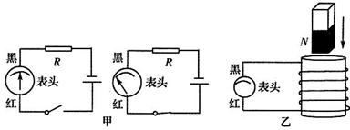 11.(3分)电流表指针偏转方向与电流流入方向的关系如图甲所示,现将此电流表与竖直放置的线圈连成乙图电路,并将磁铁从上方插入线圈,请在图乙的表头内画出磁铁插入线圈过程中指针的大体位置。