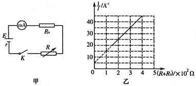 (2)该同学接入符合要求的R0后,闭合开关K,调整电阻箱的阻值,读取电流表的示数,记录多组数据,作出了图乙所示的图线,则根据该同学作出的图线可求得该电池的电动势E=