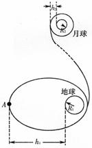 14.(11分)“嫦娥奔月”的过程可以简化为:“嫦娥一号”升空后,绕地球沿椭圆轨道运动,远地点A距地面高为h1,在远地点时的速度为v,然后经过变轨被月球捕获,再经多次变轨,最终在距离月球表面高为h2的轨道上绕月球做匀速圆周运动。