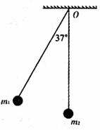 悬挂m2的细线处于竖直状态,悬挂m1的细线处于伸直状态且与竖直方向成37°角。现将m1由静止释放,m1与m2碰撞后粘在一起。若线长L=1m,重力加速度g=10m/s2,取sin37°=0.6,cos37°=0.8,求: