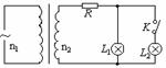 如图所示,理想变压器的副线圈通过输电线接两个相同的灯泡