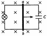 9.如图所示,匀强磁场的方向垂直于电路所在平面,导体棒与电路接触良好.当导体棒ab在外力F作用下从左向右做匀加速直线运动时,若不计摩擦和导线的电阻,整个过程中,灯泡L未被烧毁,电容器C未被击穿,则该过程中 ( )