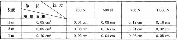 测试结果表明线材受拉力作用后其伸长与材料的长度成 比,与材料的横截面积成 比;上述金属细杆承受的最大拉力为 N.