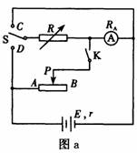 11.(11分)某同学设计了一个如图a所示的实验电路,用以测定电源电动势和内阻,使用的实验器材为:待测干电池组(电动势约3V)、电流表(量程0.6A,内阻小于1Ω、电阻箱(0-99.99Ω)、滑动变阻器(0-10Ω)、单刀双掷开关、单刀单掷开关各一个及导线若干.考虑到干电池的内阻较小,电流表的内阻不能忽略.