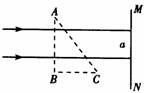12.如图所示,MN是暗室墙上的一把直尺,一束宽度为a的平行白光垂直射向MN.现将一横截面积是直角三角形(顶角A为300)的玻璃三棱镜放在图中虚线位置,且使其截面的直角边AB与MN平行,则放上三棱镜后,射到直尺上的光将 ( )