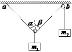 在如图所示装置中,两物体质量分别为m1、m2,悬点a、b间的距离远大于滑轮的直径,不计一切摩擦,整个装置处于静止状态.由图可知