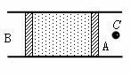 如图所示,内壁光滑、两端开口的圆柱形容器用活塞A、B封闭着一定质量的理想气体,容器及活塞用绝热的材料制成,活塞A、B质量均为m,可在容器内无摩擦地滑动。现有一质量也为m的橡皮泥球C以速度