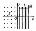 15.如图所示的坐标系,在y轴左侧有垂直纸面磁感应强度为B的匀强磁场.在x=L处有一个与x轴垂直放置的屏,y轴与屏之间有与y轴平行的匀强电场.在坐标原点O处有一个静止的放射性原子核发生一次