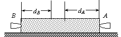 21.如图所示,木块静止在光滑水平面上,子弹A、B从木块两侧同时水平射入木块,最终都停在木块中,这一过程中木块始终保持静止,现知道子弹A射入的深度dA大于子弹B射入的深度d.B,若用tA、tB表示它们在木块中运动的时间,用vA、vB表示它们的初速度大小,用EKA、EKB表示它们的初动能,用mA、mB表示它们的质量,则可判断
