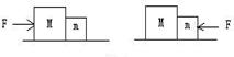 在光滑的水平面上,有两个相的物互接触体如图所示,已知M>m,第一次用水平力F由左向右推M,物体间的作用力为F1,第二次用同样大小的水力F由右向左推m,物体间的作用力为F2,则 ( )