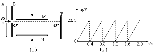 并发出荧光。现给金属板M、N之间加一个如图(b)所示的变化电压u1,在t=0时刻,M板电势低于N板。已知电子质量为