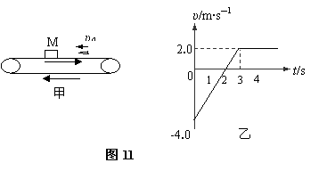 察者记录的小物块被击中后的速度随时间变化关系如图(11)乙所示(图中取向右运动的方向