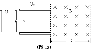 (2)若微粒射出偏转电场时的偏转角为θ=30°,并接着进入一个方向垂直于纸面向里的匀强磁场区,则两金属板间的电压U2是多大?
