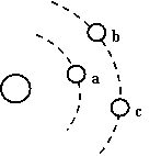 如图所示,a、b、c是大气层上圆形轨道上运行的三颗人造地球卫星,a、b质量相同且小于c的质量,下面说法中正确的是( )