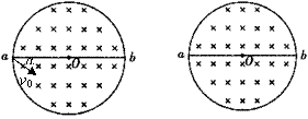 (1)当粒子的速度方向与直径ab的夹角α为多少时,粒子刚好从磁场边界b处飞出磁场,该粒子在磁场中运动的时间为多少?