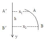 (3)(5分)在“研究平抛物体的运动”试验中,某同学只在竖直板面上记下了重垂线y的方向,但忘了记下平抛的初位置,在坐标纸上描出了一段曲线的轨迹,如图所示。现在曲线上取A,B两点,量出它们到y轴的距离,AA’=x1, BB’=x2 ,AB的竖直距离h,用这些可以求得小球平抛时的初速度为