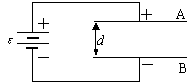 如图所示,电容量为C的平行板电容器的极板A和B水平放置,相距为d,与电动势为ε、内阻可不计的电源相连。设两板之间只有一个质量为m的导电小球,小球可视为质点。已知:若小球与极板发生碰撞,则碰撞后小球的速度立即变为零,带电状态也立即改变,改变后,小球所带电荷符号与该极板相同,电量为极板电量的α倍(α<<1)。不计带电小球对极板间匀强电场的影响。重力加速度为g。