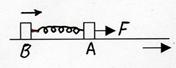 28. 如图所示,光滑水平地面上木块A和B在水平推力F作用下,以加速度a作匀加速直线运动。木块A和B质量分别为m1和m2,两者之间用轻质弹簧相连。某时刻撤去外力F,则该瞬间A的加速度a1和B的加速度a2分别为(以运动方向为正方向) ( )