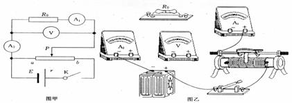(2)某一电压表的刻度线清楚,但刻度上的数字模糊不清了。某物理课外兴趣小组的同学们为了测定该电压表的量程和内阻,设计了如图甲所示的电路图,已知定值电阻的阻值为R0。请您按要求完成以下问题。