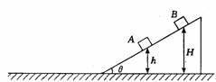 10、(16分)如图所示,倾角θ=30°的光滑斜面固定于光滑水平面上,斜面与水平面的连接处是光滑圆弧,在斜面上距水平面高分别为h=0.2m和H=0.8m的两个位置同时由静止释放两个物体A和B(均可看成是质点)。g取10m/s2,求: