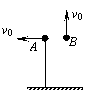 两个完全相同的小球A、B,在某一高度处以相同大小的初速度v0分别沿水平方向和竖直方向抛出,如图,下列说法正确的是:C