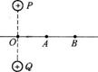 9. 如图所示,P、Q是两个电量相等的正的点电荷,它们连线的中点是O,A、B是中垂线上的两点,