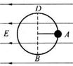 (20分)如图所示,竖直放置的光滑圆环上,穿过一个绝缘小球,小球质量为m,带电量为q,整个装置置于水平向左的匀强电场中。今将小球从与环心O在同一水平线上的A点由静止释放,它刚能顺时针方向运动到环的最高点D,而速度为零,则电场强度大小为多大?小球到达最低点B时对环的压力为多大?