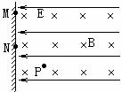 如图所示,水平向左的匀强电场场强E=4V/m,垂直纸面向里的匀强磁场磁感应强度B=2T,质量m=1g的带正电小物块A从M点沿绝缘粗糙的竖直墙壁无初速下滑,当它沿墙壁滑行了d=0.8m到达N点时就离开墙壁做曲线运动,之后当A运动到P点时受力平衡,此时A的速度方向与水平方向成45º,已知P点与M点的高度差h=1.6m,g取10m/s2,求: