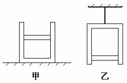 如图甲所示,静止在水平地面上的绝热气缸内用绝热活塞封闭着一定质量的理想气体,气体的体积为v1,温度为T1,压强为P1,内能为E1 。 现将气缸倒置并用绳悬挂起来处于静止状态,如图乙所示,此时,气体的体积为v2,温度为T2,压强为P2,内能为E2 。下面说法正确的是