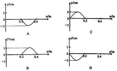 如图所示,一质点以坐标原点O为中心位置在y轴上振动,其振幅为0.05m,周期为0.4s.振动在介质中产生的简谐波沿x轴正方向传播,其速度为1.0m/s.计时开始时该质点在坐标原点O,速度方向为y轴负方向.0.2s后此质点立即停止运动,则再经过0.2s后的波形是